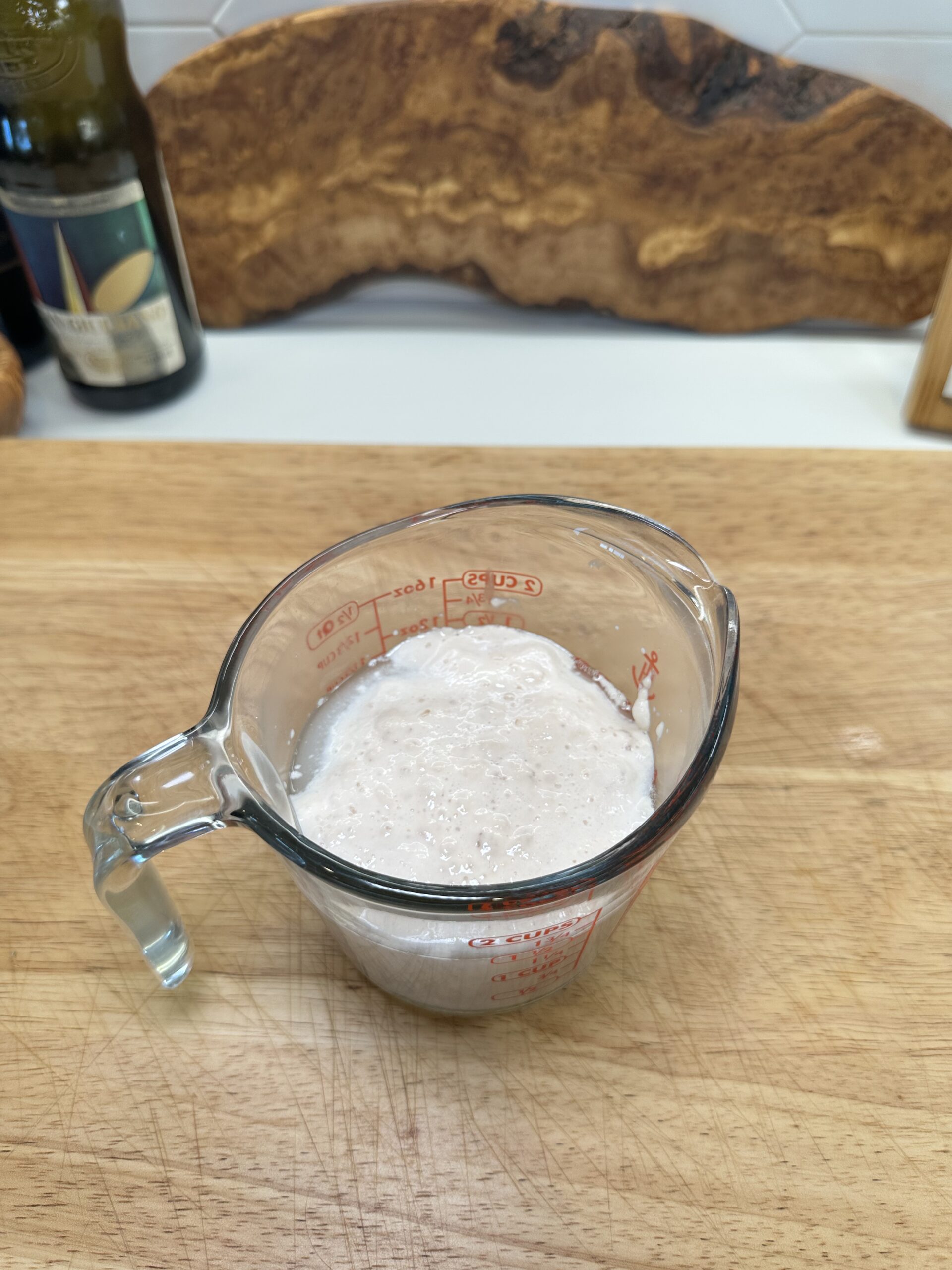 In a small bowl, combine warm water, yeast, and a honey (or sugar). Let sit 5–10 minutes until it starts to activate. It should start bubbling and look foamy